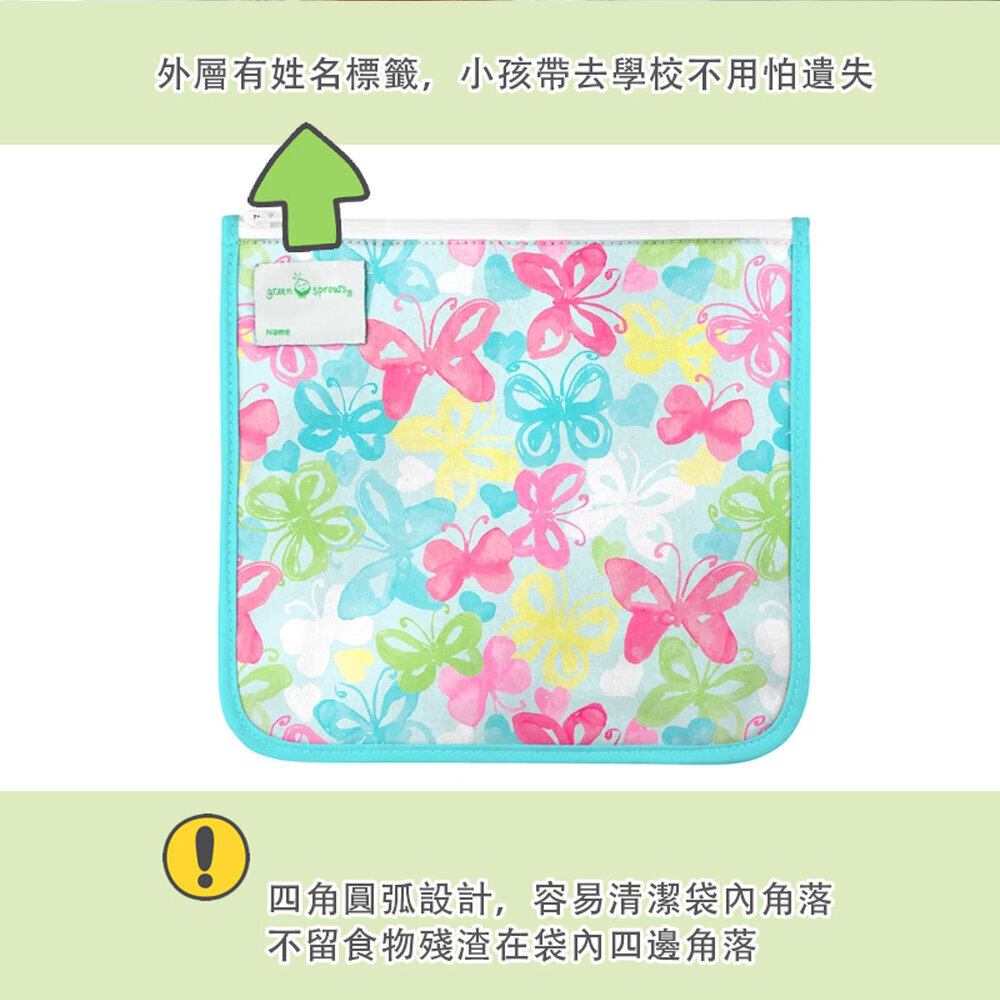美國 green sprouts 小綠芽可攜式、具保溫功能食物袋/零食袋與/三明治袋/小物收納袋 (可放三明治/食物/固齒器/奶嘴) 兩入組_蝴蝶甜心_GS165373-AB