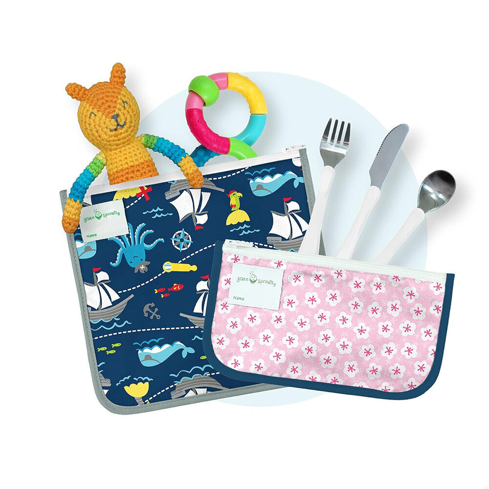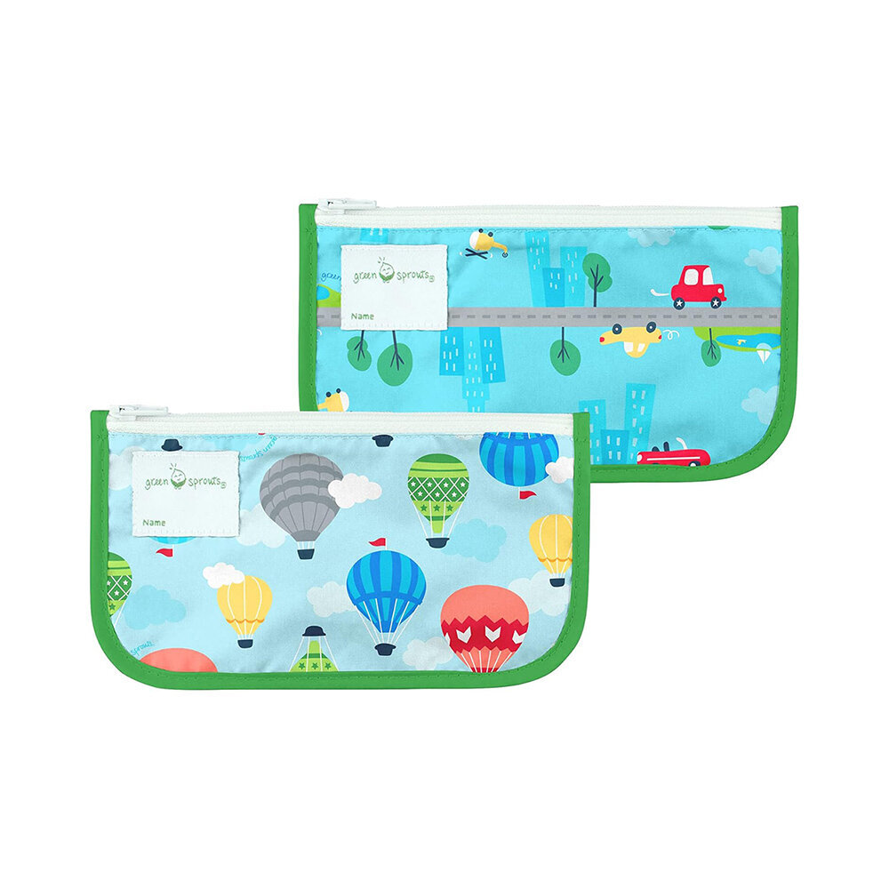 美國 green sprouts 小綠芽 可攜式零食袋、食物袋與小物收納袋(可攜帶固齒器/奶嘴) 兩入組_環遊世界_GS165374-AH