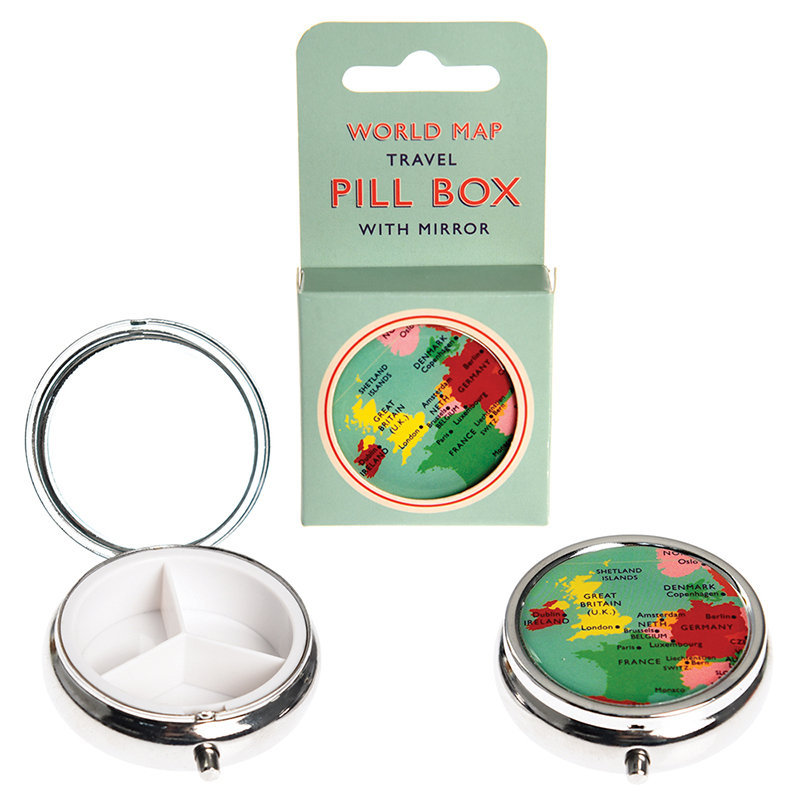 英國 Rex London 三格藥盒(含鏡子)_世界地圖_RL28243