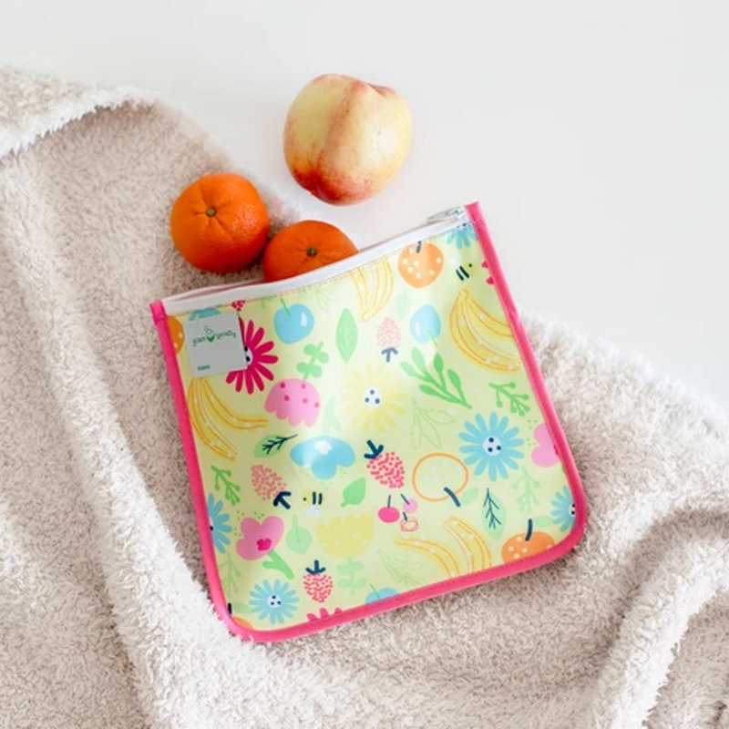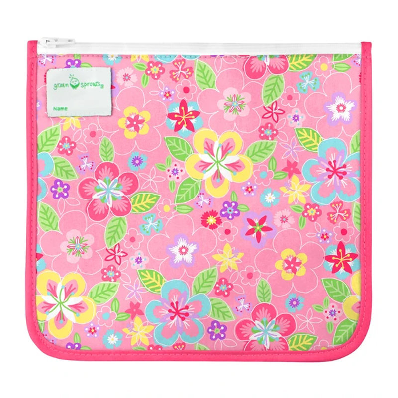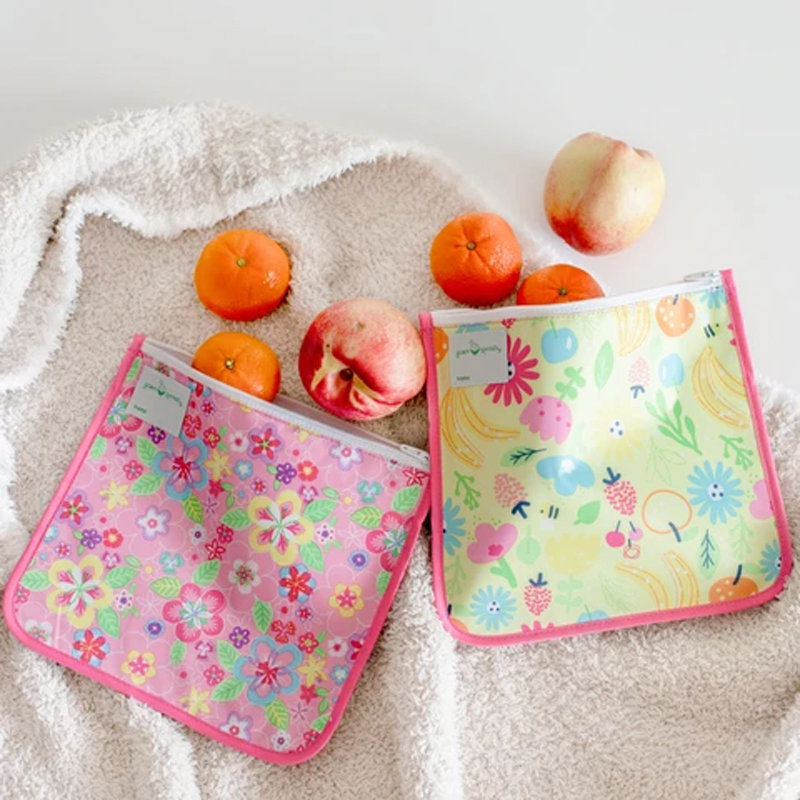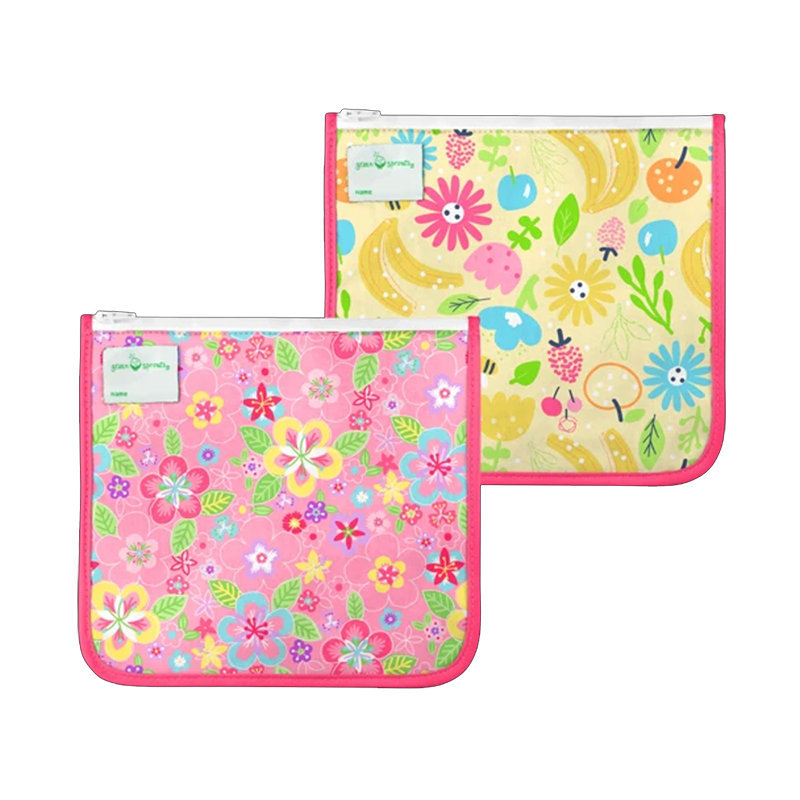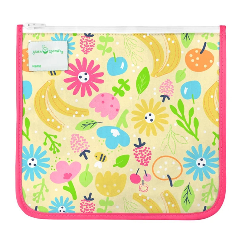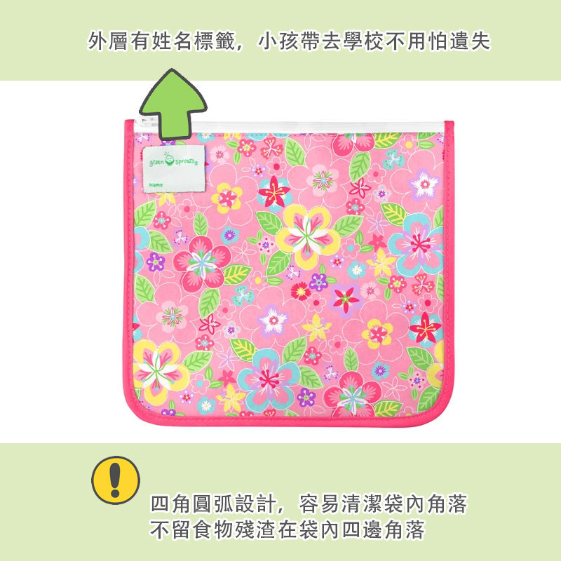 美國 green sprouts 小綠芽 可攜式、具保溫功能食物袋/零食袋與/三明治袋/小物收納袋 (可放三明治/食物/固齒器/奶嘴) 兩入組_粉黃花海_GS165373-PF