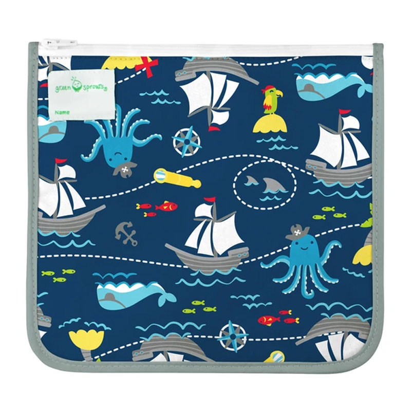 美國 green sprouts 小綠芽具保溫功能 可重複使用 食物袋/零食袋/三明治袋或小物收納袋 2入組_海上樂園_GS165373-NP