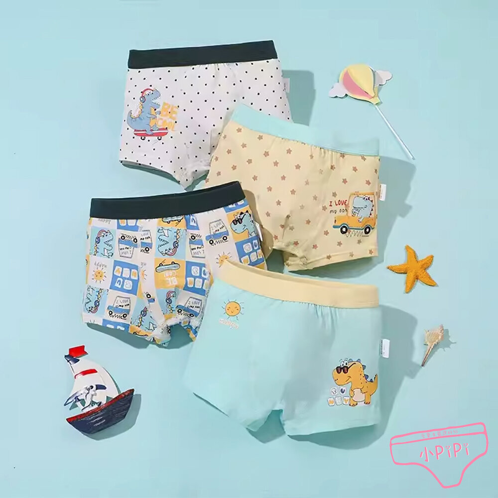 【小pipi】純棉兒童四角平口內褲4件組_男童_恐龍愛玩耍_PB4005