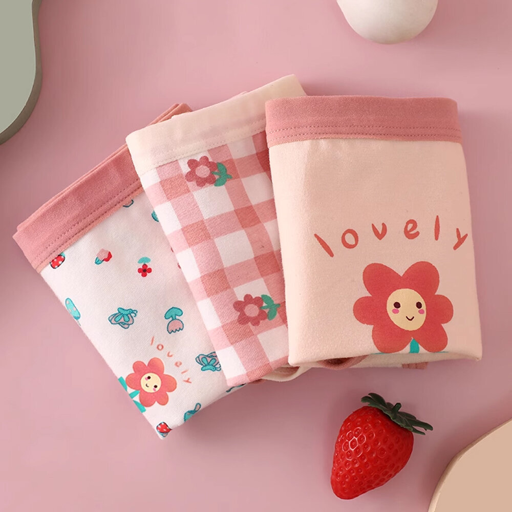 小pipi_有機純棉兒童三角內褲3件組_女童_微笑花花_PG3003