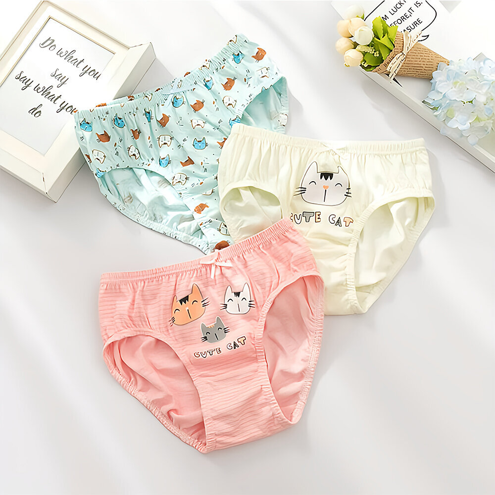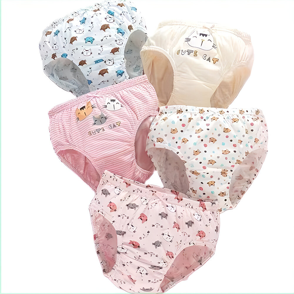 小pipi_純棉兒童三角內褲5件組_女童_貓咪星球_PG5002