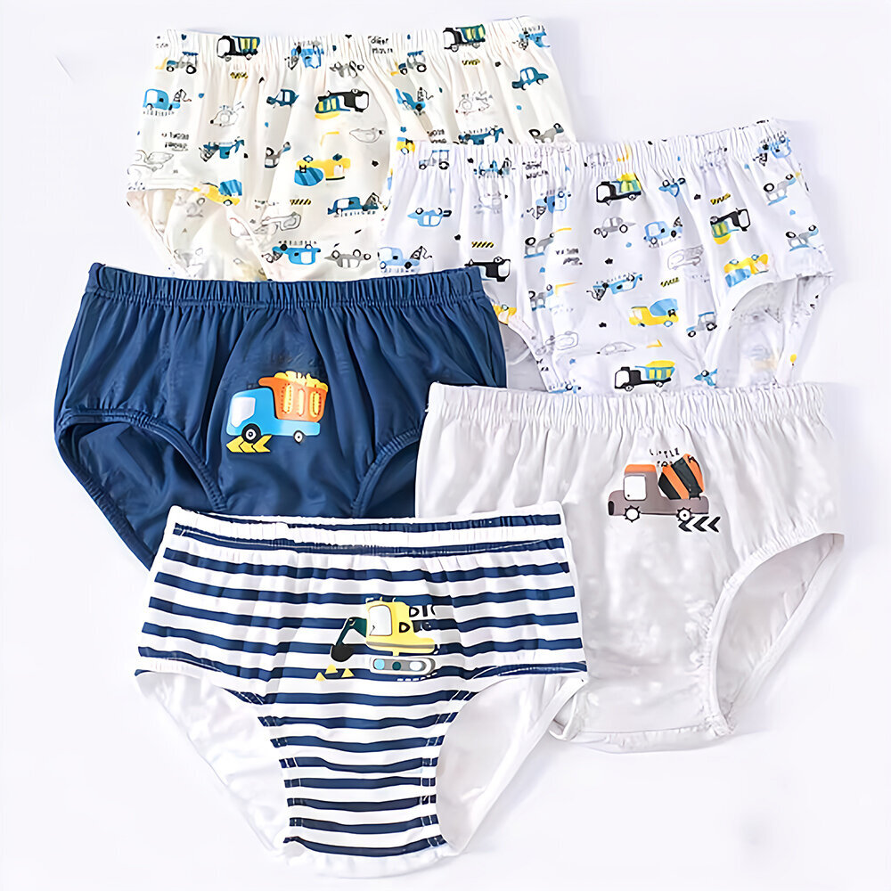 小pipi_純棉兒童三角內褲5件組_男童_工程車_PB5004