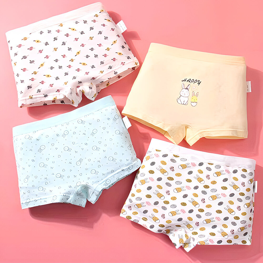 小pipi_純棉兒童四角平口內褲4件組_女童_彩蛋小兔_PG4005