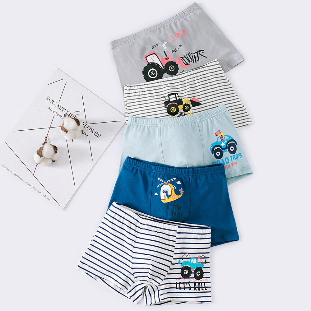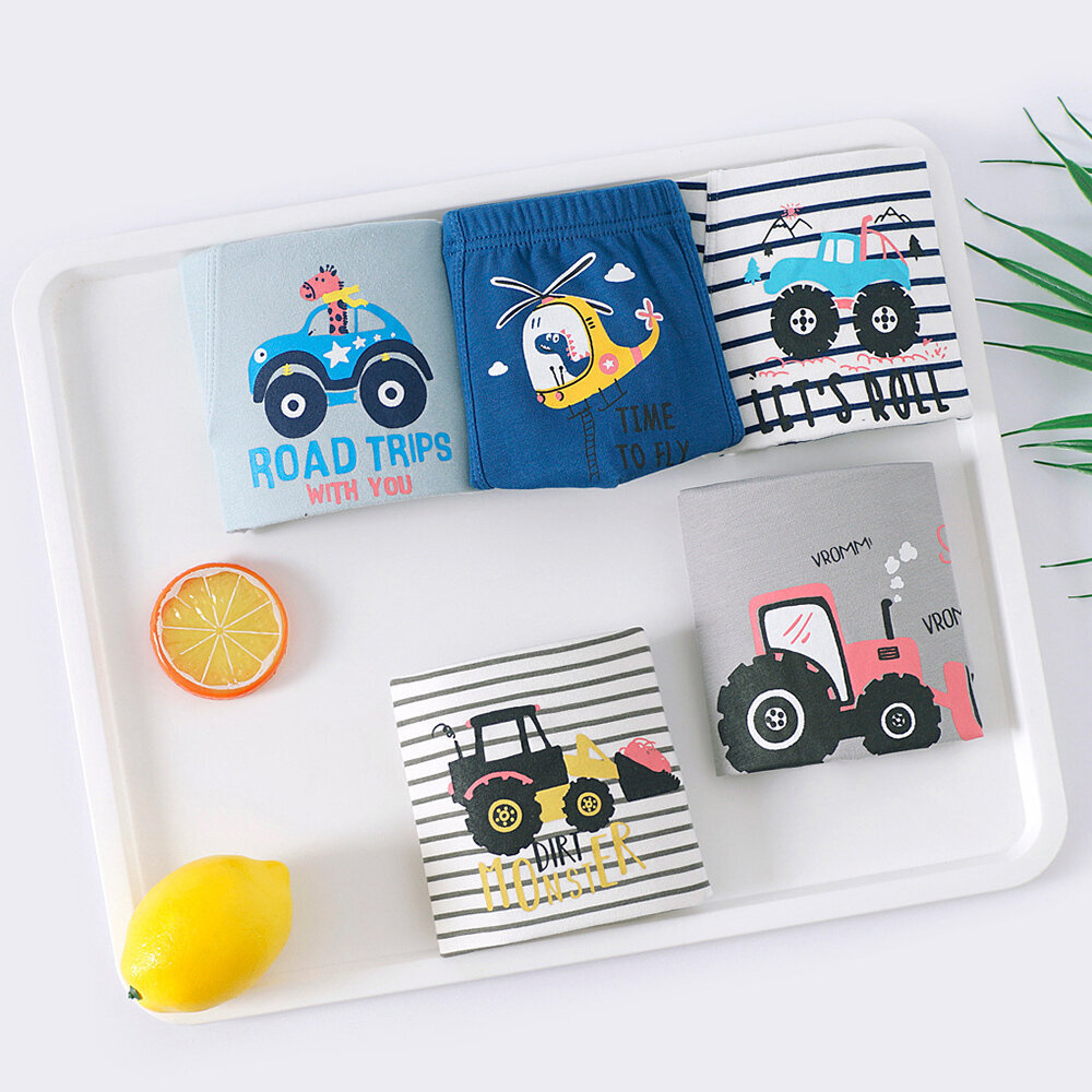 小pipi_純棉兒童四角平口內褲5件組_男童_動物汽車_PB5008