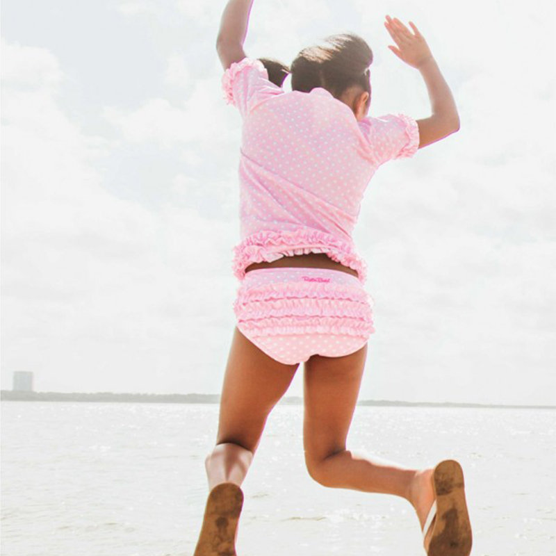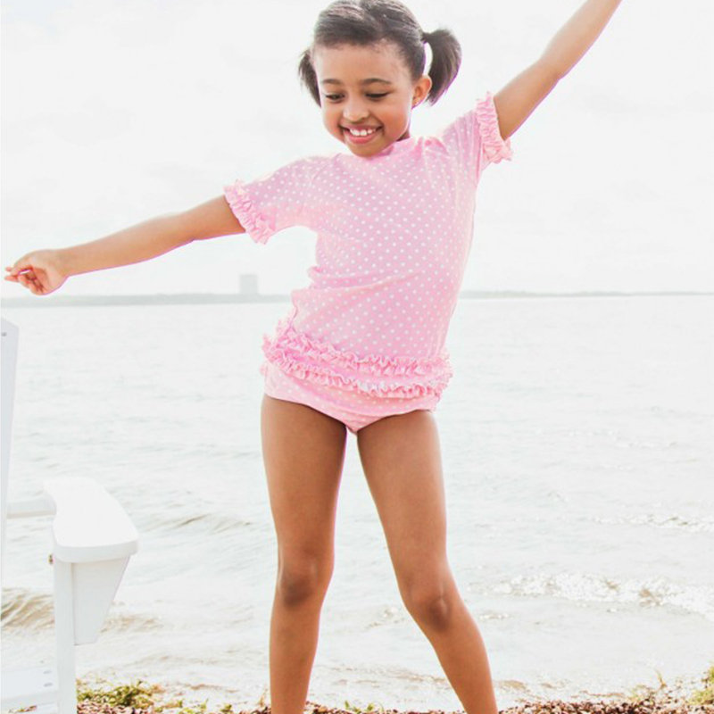 美國 RuffleButts 小女童UPF 50+防曬兩件式短袖泳裝_粉色圓點_RBSG21-24
