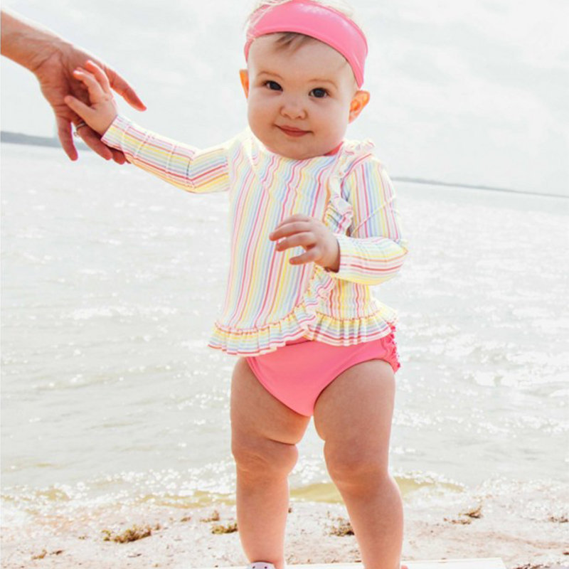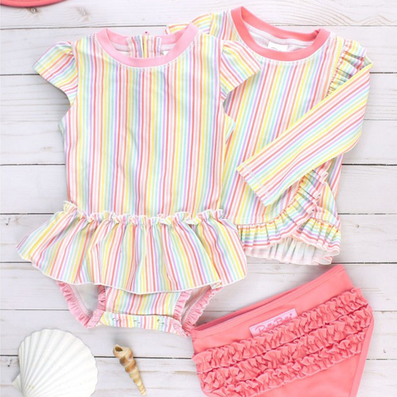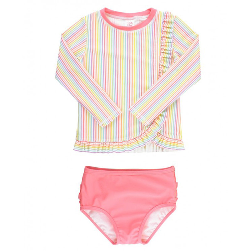 美國 RuffleButts 小女童UPF 50+防曬兩件式長袖泳裝_夏日彩虹_RBSG21-21