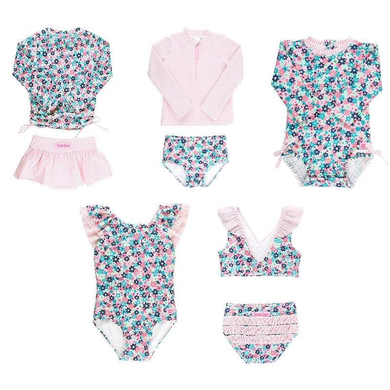 美國 RuffleButts 小女童UPF 50+防曬兩件式長袖泳裝_搖擺萬花筒_RBSG21-06