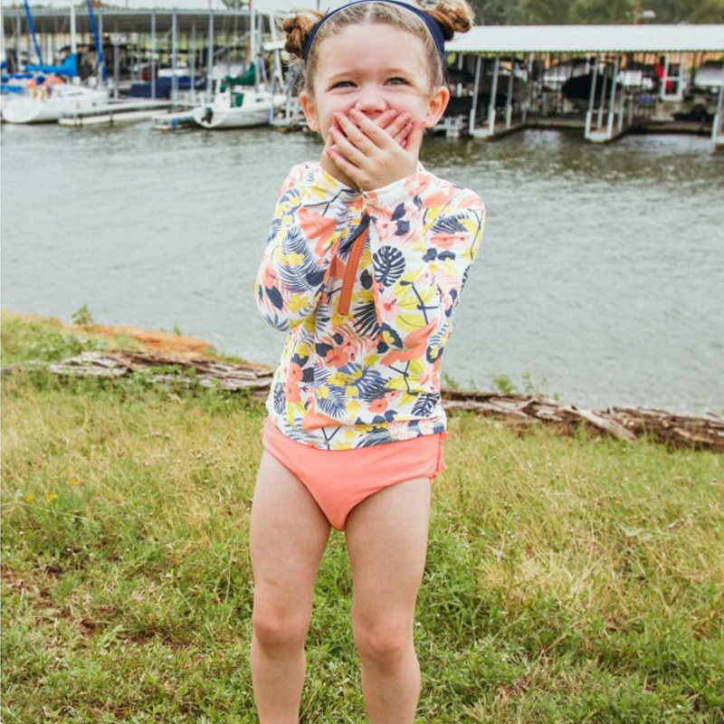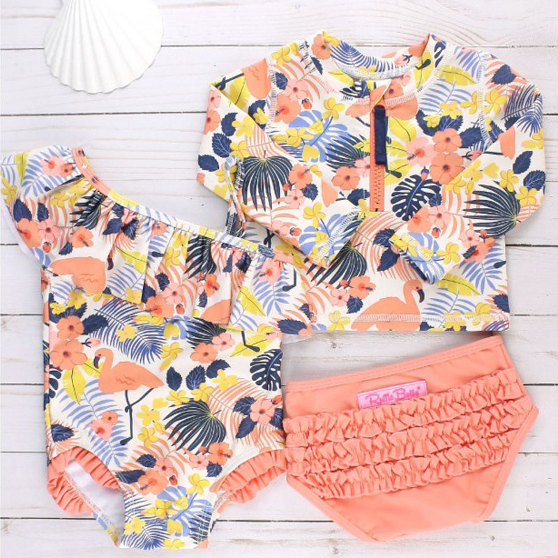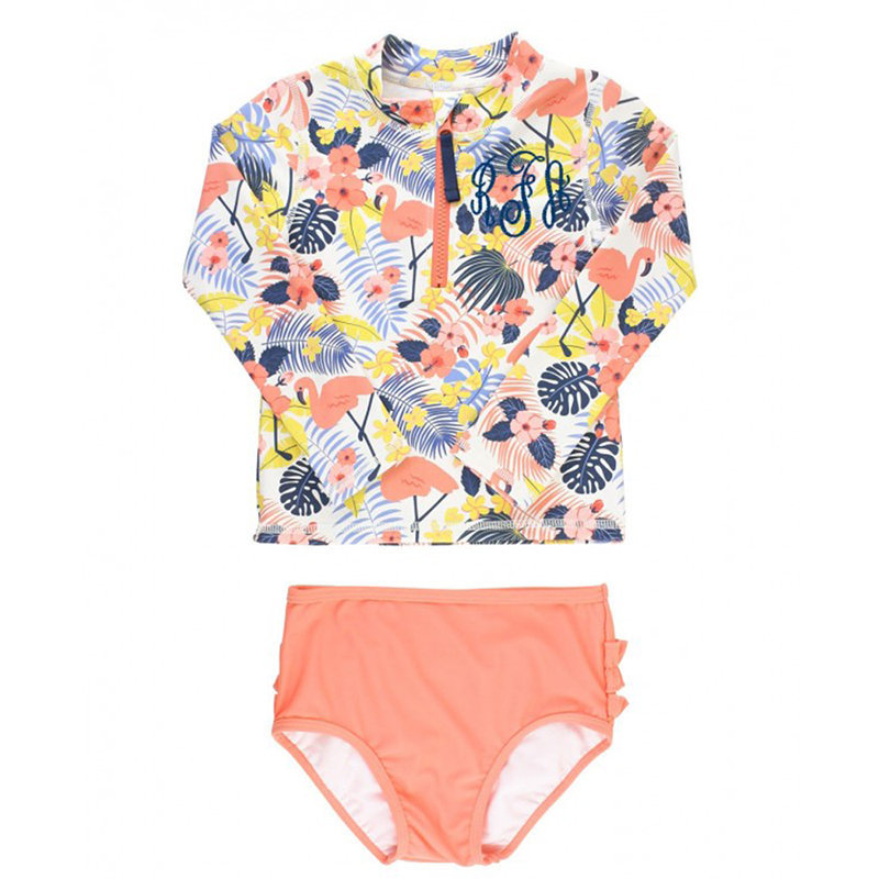 美國 RuffleButts 小女童UPF 50+防曬兩件式長袖泳裝_熱帶夏威夷_RBSG21-04