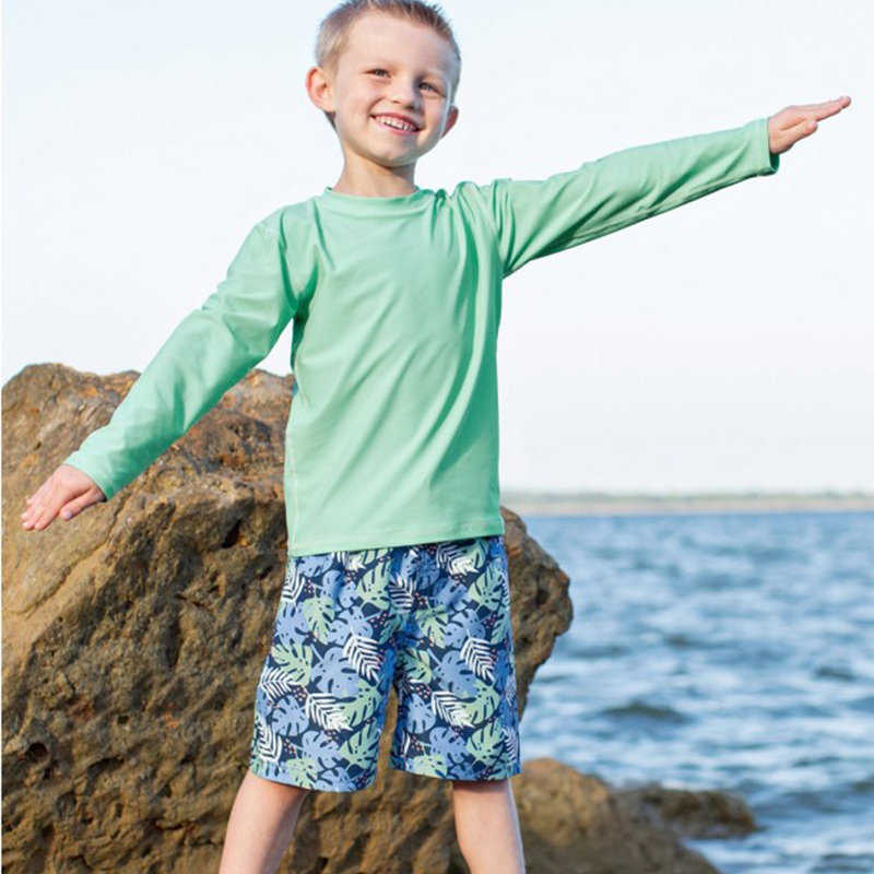 美國 RuffleButts 小男童UPF 50+防曬長袖泳衣_大地綠色_RBSB21-05
