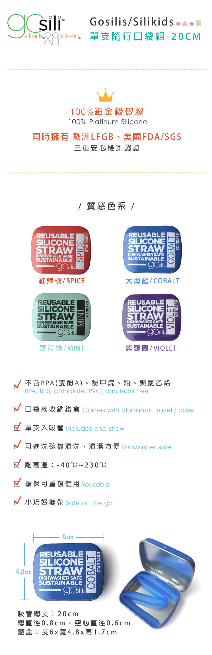 美國gosili/silikids ❚ 20cm ❚ 單支吸管隨行口袋組--紫羅蘭_SK009