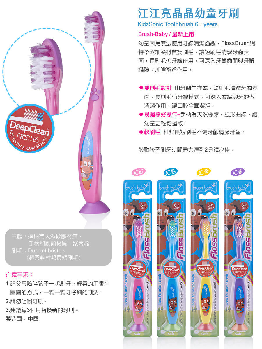 英國 brush-baby汪汪亮晶晶兒童牙刷(1入/6y+)_粉紫_bb26