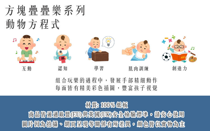 英國 JoJo Maman BeBe 優質玩具/益智/方塊疊疊樂_紙板系列_動物方程式_(JJE2482)