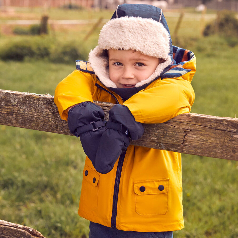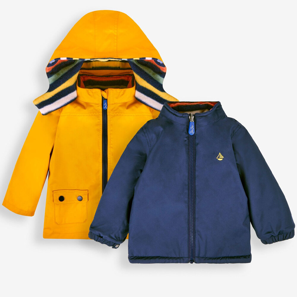 英國 JoJo Maman BeBe 四合一多功能防水保暖連帽外套_黃色綵帶_JJL1649