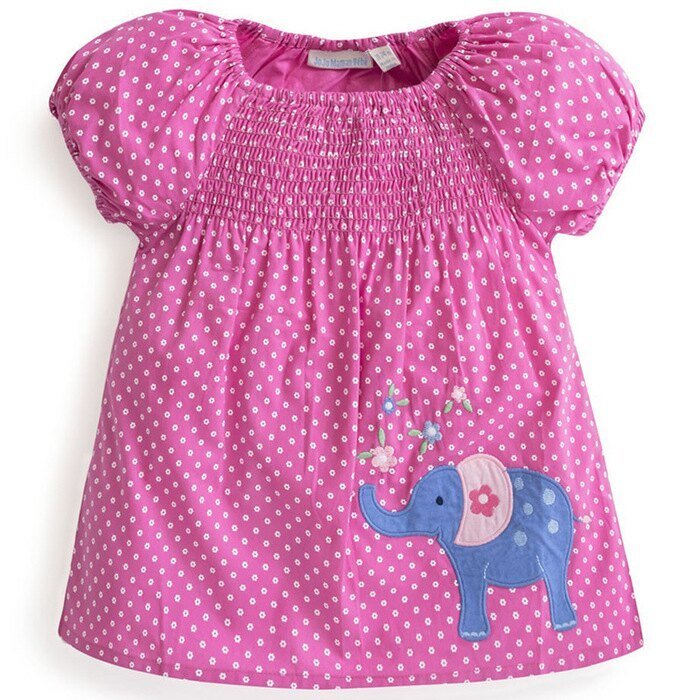 英國 JoJo Maman BeBe 嬰幼兒短袖純棉上衣單入組_粉點大象 (JJGS-e1152)