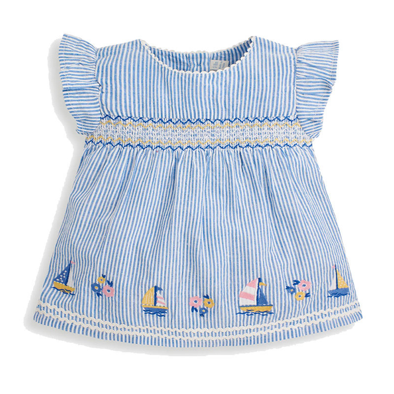 英國 JoJo Maman BeBe 嬰幼兒/兒童100% 純棉短袖上衣_藍色風海洋(JJH1730)