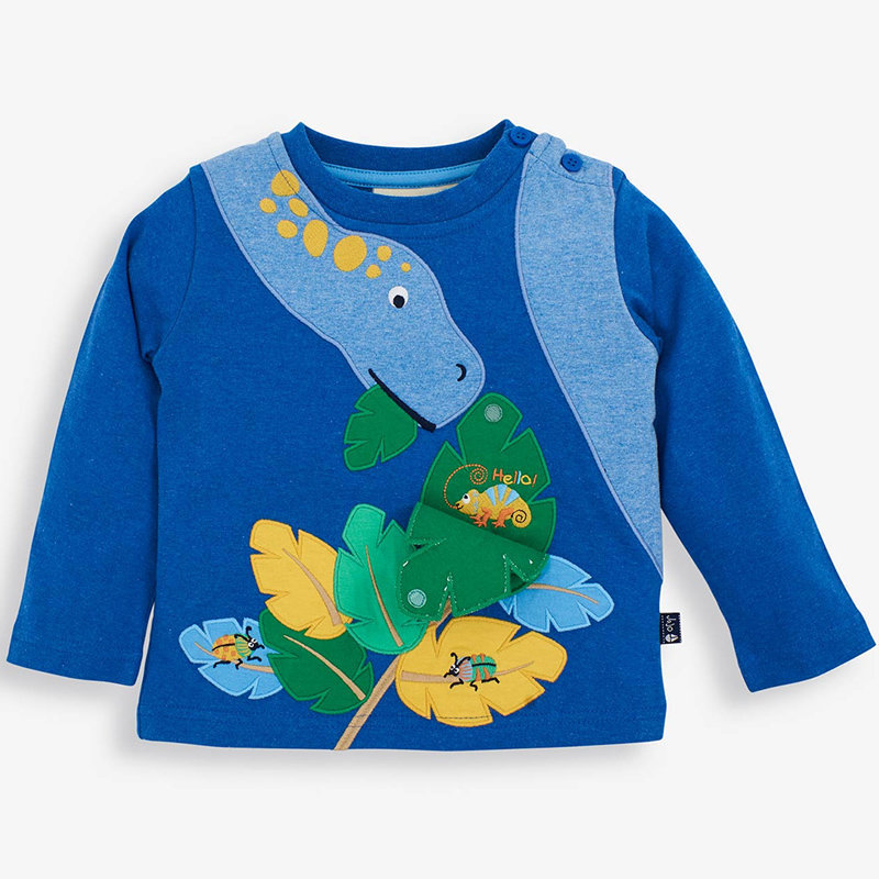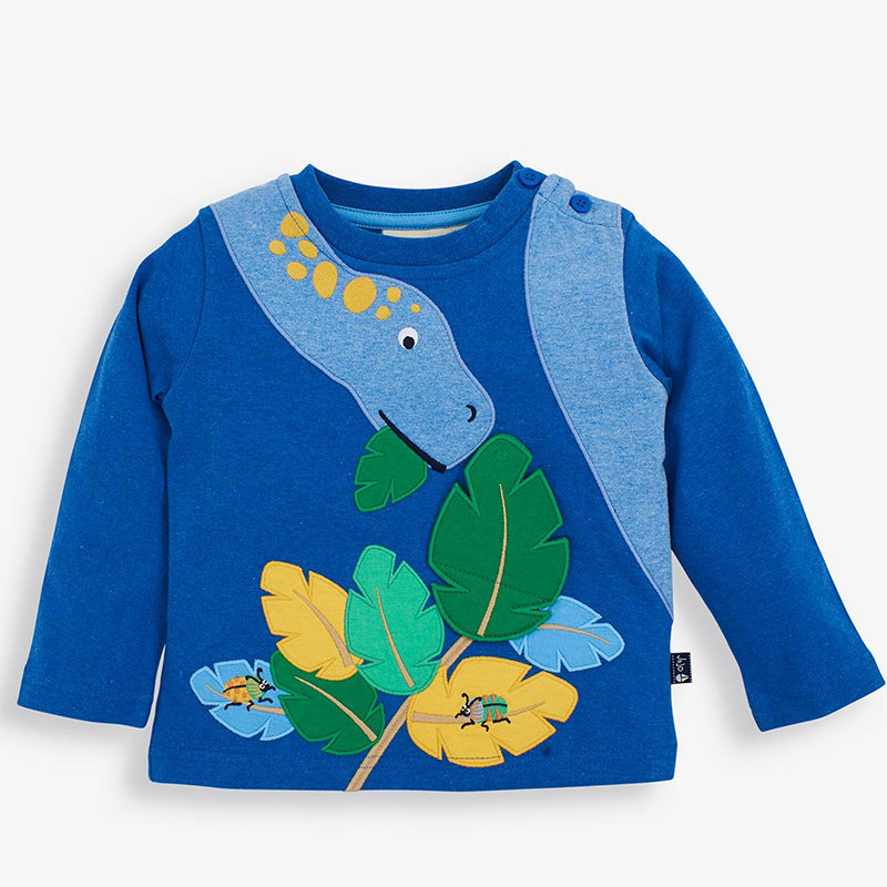英國 JoJo Maman BeBe 嬰幼兒100%純棉長袖上衣_藍色恐龍 (JJE5830)