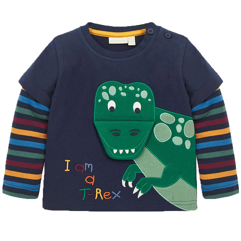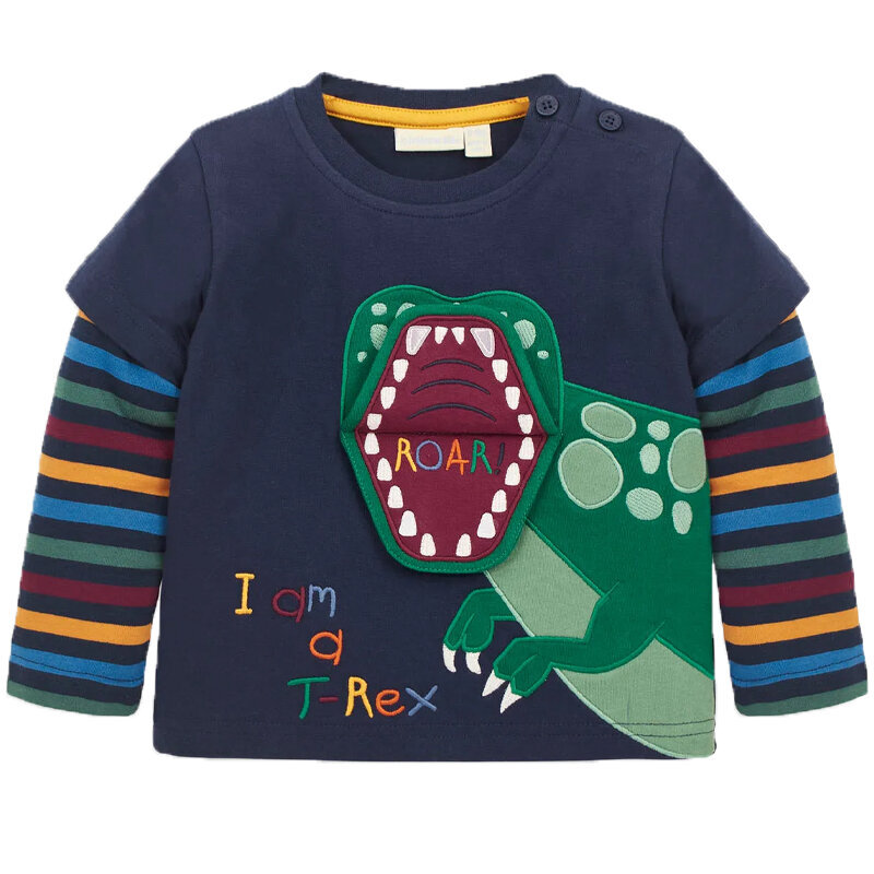 英國 JoJo Maman BeBe 嬰幼兒100%純棉長袖上衣_霸王龍_JJH3661