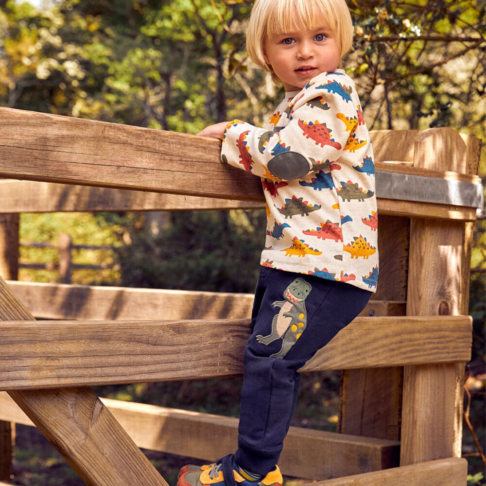 英國 JoJo Maman BeBe 幼/兒童超優質秋冬100%純棉長褲_搖擺恐龍_JJL1394