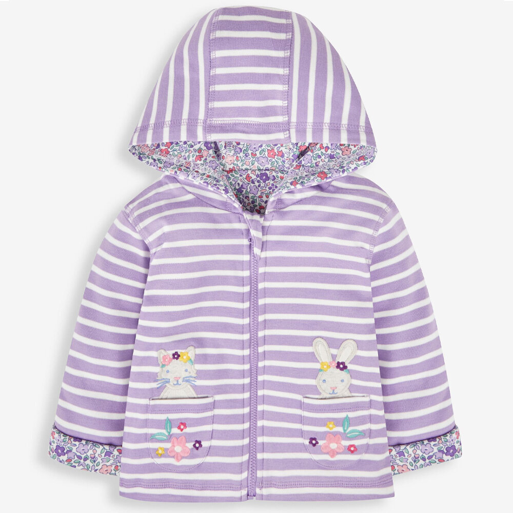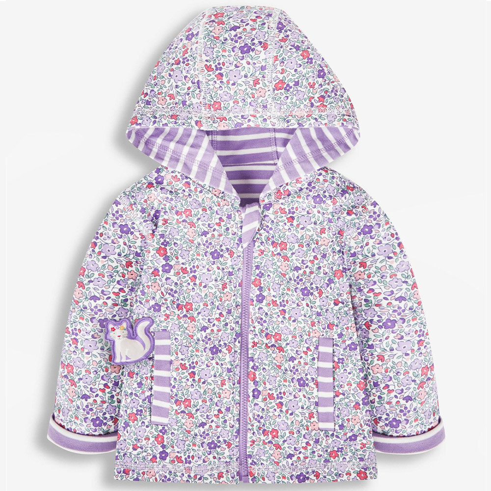 英國 JoJo Maman BeBe 幼/兒童雙面穿100%純棉保暖連帽外套_薰衣草貓_JJL1098