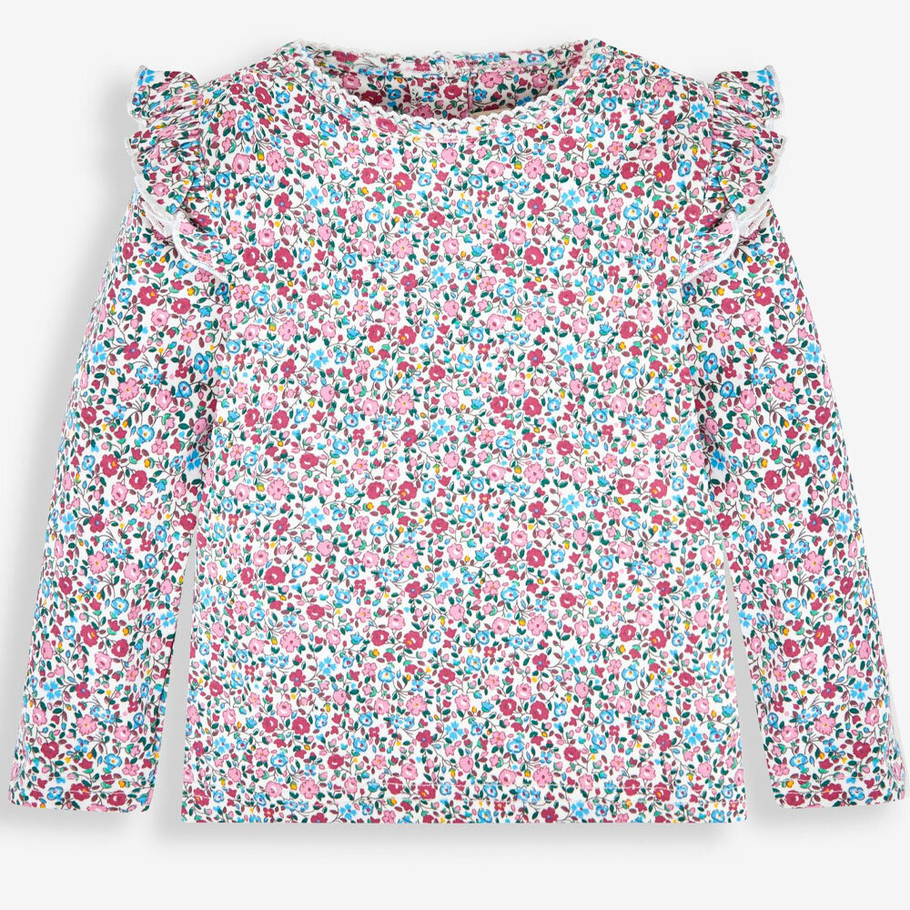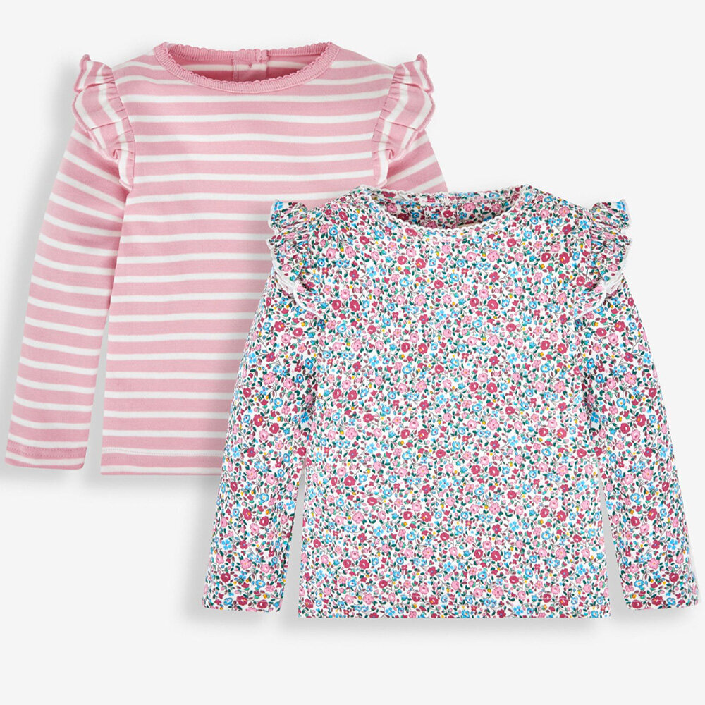 英國 JoJo Maman BeBe 幼/兒童100%純棉長袖上衣2件組(可當內搭)_粉色碎花_JJL1055