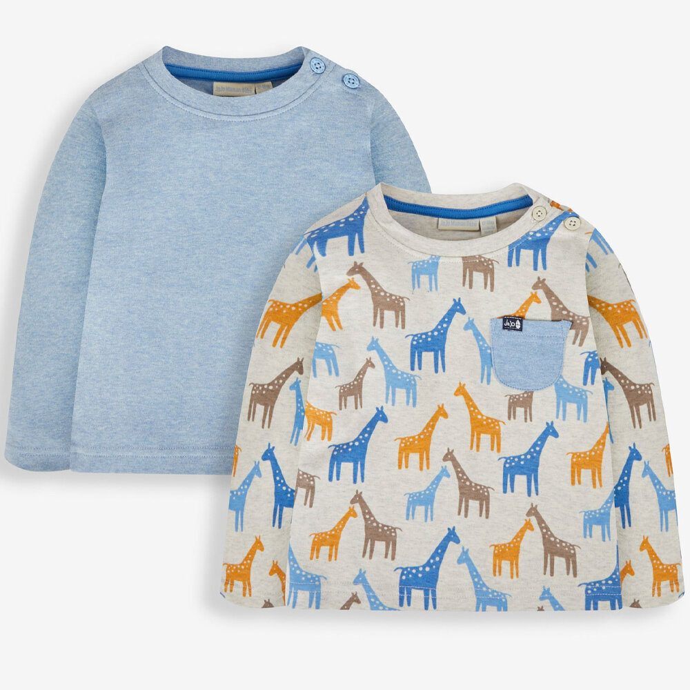 英國 JoJo Maman BeBe 幼/兒童100%純棉長袖上衣2件組(可當內搭)_非洲印象_JJL1543