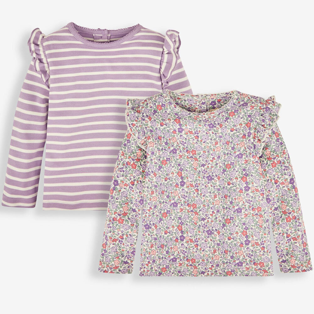 英國 JoJo Maman BeBe 幼/兒童100%純棉長袖上衣2件組(可當內搭)_淺紫碎花_JJL1544