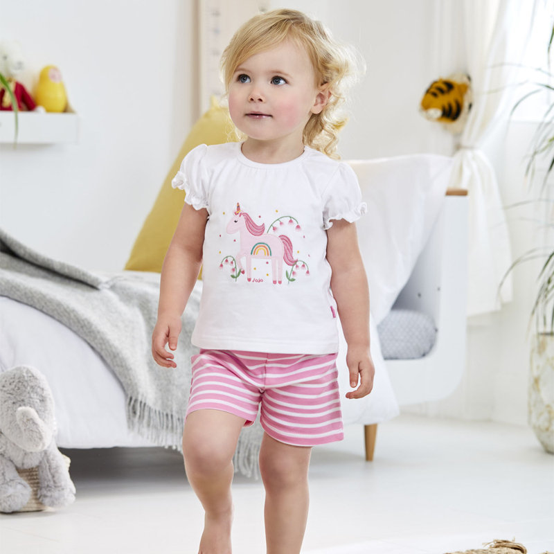英國 JoJo Maman BeBe 超優質嬰幼兒/兒童春夏100%純棉短袖家居服/睡衣2套組_粉色獨角獸(JJH1693)