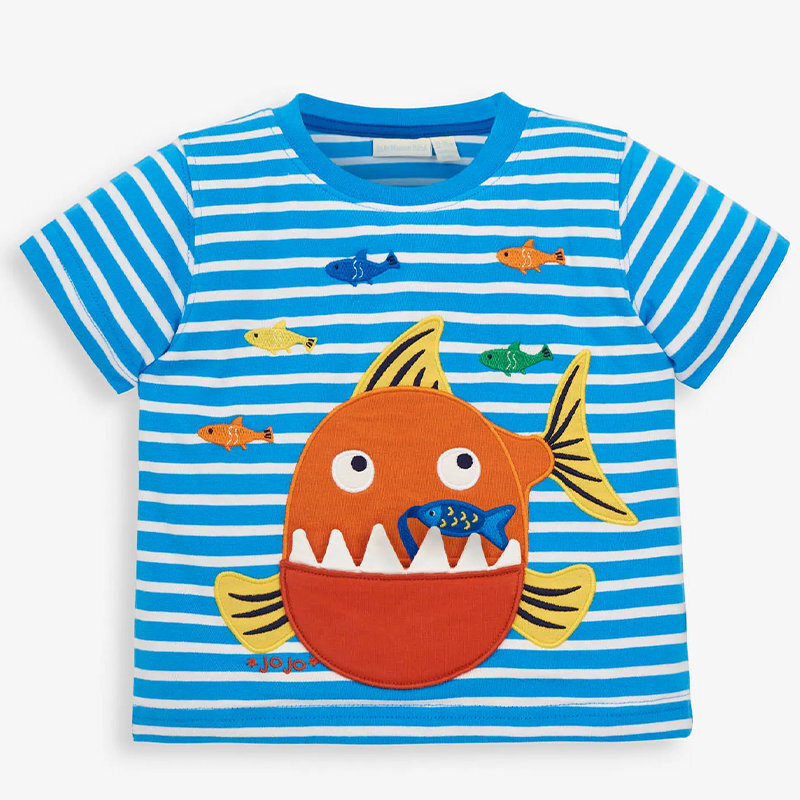 英國 JoJo Maman BeBe 超優質嬰幼兒/兒童100%純棉短袖上衣/T-shirt/動物T_大嘴魚(JJH2903)