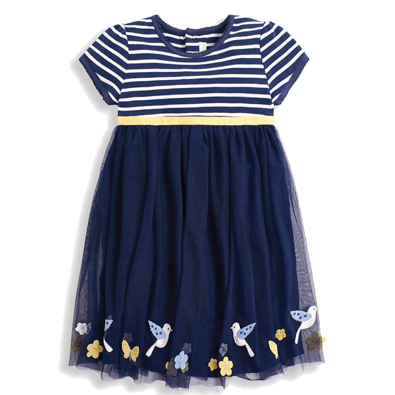英國 JoJo Maman BeBe 超優質嬰幼兒/兒童100%純棉薄紗短袖洋裝_藍紗鳥語花香 (JJE5426)