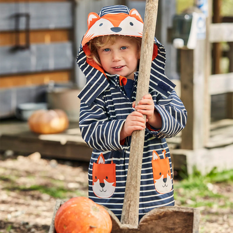 英國 JoJo Maman BeBe 防風雨水手外套/雨衣_條紋狐狸_JJH2167