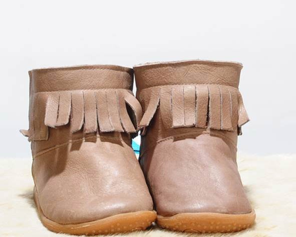 英國 shooshoos 健康無毒真皮手工童鞋/靴子_大地色流蘇靴