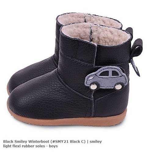 英國 shooshoos 健康無毒真皮手工童鞋/靴子_黑色小汽車冬靴