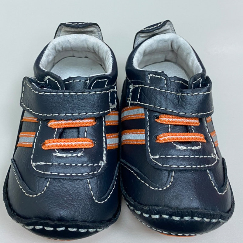 超優惠NG福利品 - 【福利品】美國 Rileyroos 手工真皮無毒學步鞋/嬰兒鞋/寶寶鞋/童鞋_深藍橘運動型鞋