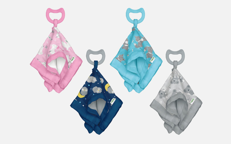 因應小怪獸的各種需求,市面上多了一種固齒器+安撫巾的產品,讓小怪獸可以同時擁有滿足口欲期也能透過安撫巾來撫慰情緒。