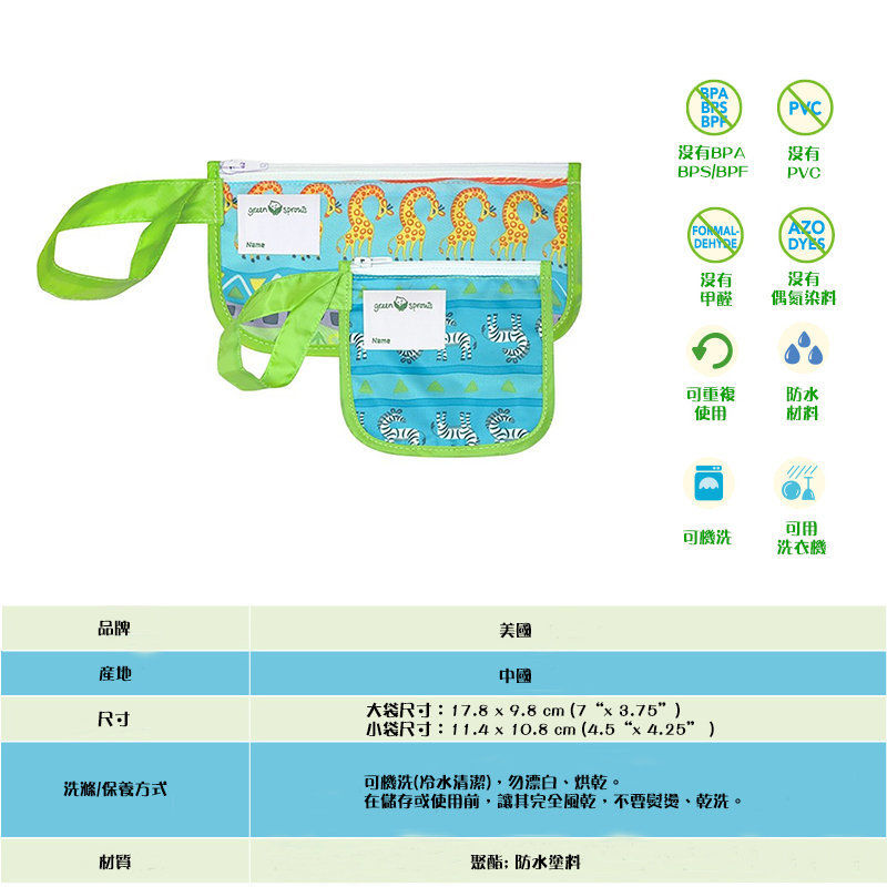 美國 green sprouts 小綠芽 可攜式零食袋、食物袋與小物收納袋(可攜帶固齒器/奶嘴) 兩入組_班馬_GS165371-GS